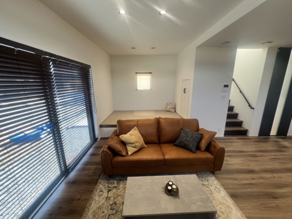 リビングは18畳+畳コーナー3畳の広々スペースを設置。ゆとりある生活をするためにも、収納面を充実し、1階は玄関にシューズクロークとファミクロも設置しました。