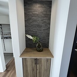外観はコンクリート調とダークブラウンをアクセントに入れ、落ち着いた雰囲気に仕上げています。