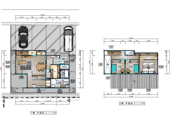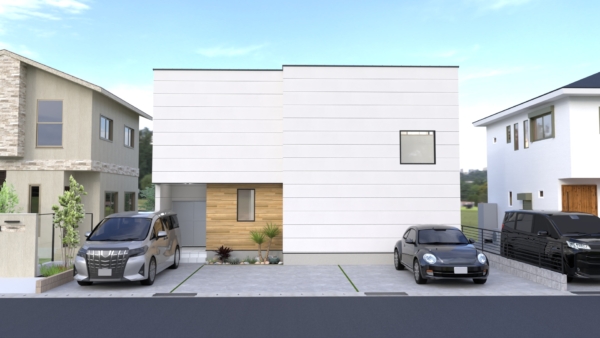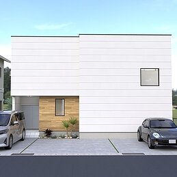 敷地間口を活かして、建物前面は駐車スペースとし、4台まで駐車可能です。